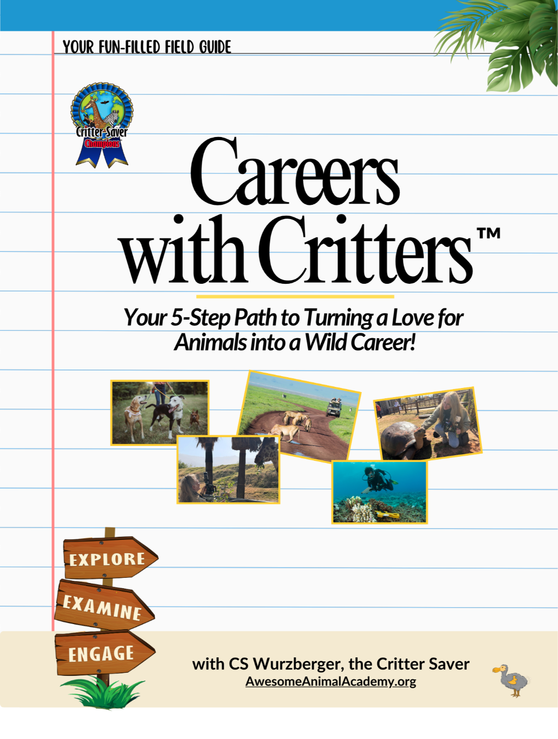 The Careers with Critters™ Field Guide is a 359-page, adventure-filled resource designed to help teens and young adults discover exciting animal-related careers and design a future they can’t wait to wake up to.