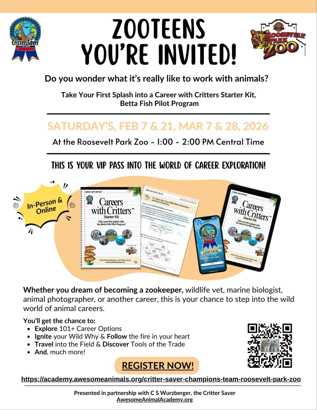 PLUS, these awesome sessions will be held both in-person at the Roosevelt Park Zoo and Online!